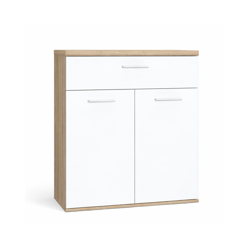 Przemyślane wnętrze umożliwia wygodne przechowywanie odzieży, dokumentów lub domowych akcesoriów, pomagając utrzymać porządek bez nadmiaru zabudowy. Komoda stanowi praktyczne uzupełnienie aranżacji, łącząc prostą formę z codzienną użytecznością.