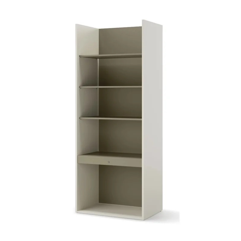 Regał o wysokości 216 cm, szerokości 85 cm i głębokości 55 cm idealnie sprawdzi się nawet w niewielkich wnętrzach. Cztery szerokie półki o przestrzeni użytkowej 81 cm zapewniają dużo miejsca na książki, dekoracje czy kolekcje. Otwarta konstrukcja bez drzwi sprzyja łatwemu i szybkiemu sięganiu po potrzebne rzeczy oraz podkreśla nowoczesny charakter mebla.