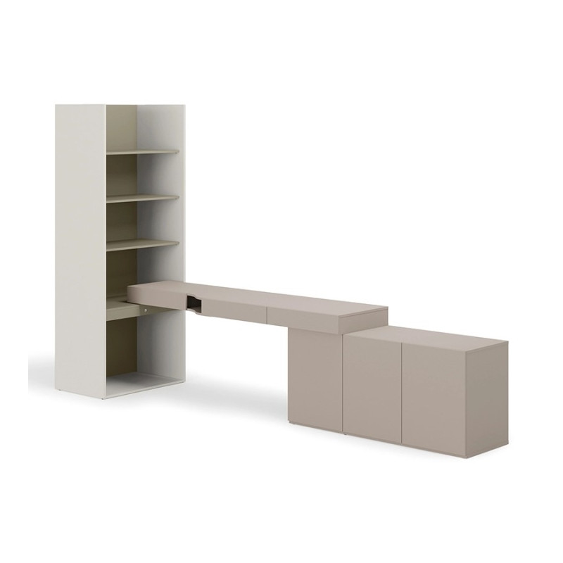 Połączenie trzech odcieni – clay grey, eukaliptus i szampański – nadaje zestawowi wyjątkowy, młodzieżowy charakter. Przemyślany układ zawiera 9 półek, 3 pojemne szuflady i 3 drzwi, otwierane za pomocą estetycznych podchwytów. Całość została zaprojektowana tak, by odpowiadać zarówno na codzienne potrzeby, jak i wspierać rozwój samodzielności i organizacji młodych ludzi.