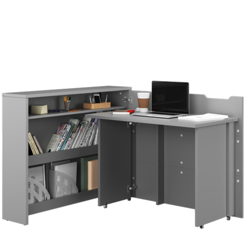W urządzeniu kącika do pracy z prawdziwego zdarzenia przeszkadza Ci niewielka ilość dostępnej przestrzeni? Biurko składane z kolekcji Work Concept udowadnia, że do cieszenia się modnym i funkcjonalnym efektem nie potrzeba wiele, a mała kawalerka czy niewielki pokoik wcale nie stanowią przeszkody do spełniania marzeń! Zamknięty mebel do złudzenia przypomina minimalistyczną, zgrabną komodę, która idealnie wkomponuje się we współcześnie urządzone pomieszczenia, dodając im przy tym elegancji.