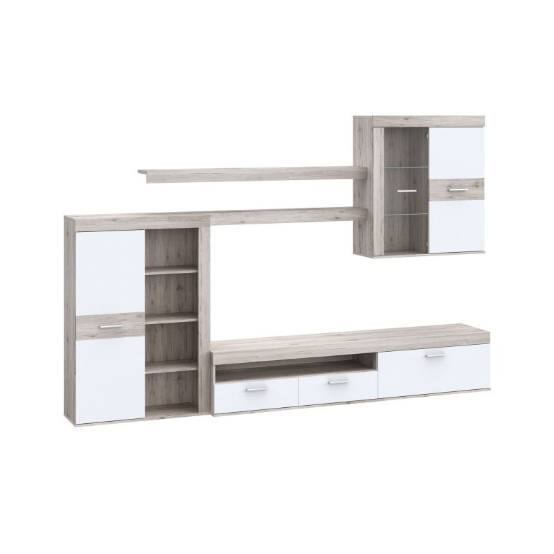 Meblościanka do salonu Zumba ZMBM01L biały/dąb piaskowy