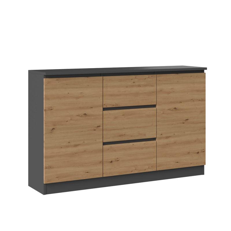 - Bezuchwytowe, fronty szuflad oraz drzwi zapewniają wygodne użytkowanie i podkreślą modernistyczny charakter wnętrza