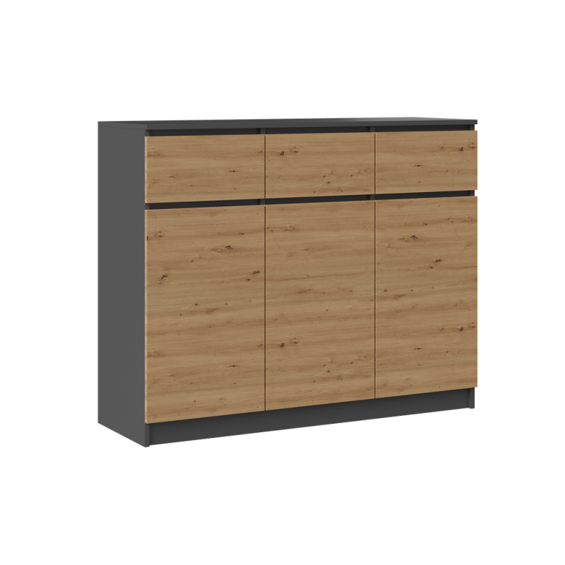 - Bezuchwytowe, fronty szuflad oraz drzwi zapewniają wygodne użytkowanie i podkreślą modernistyczny charakter wnętrza