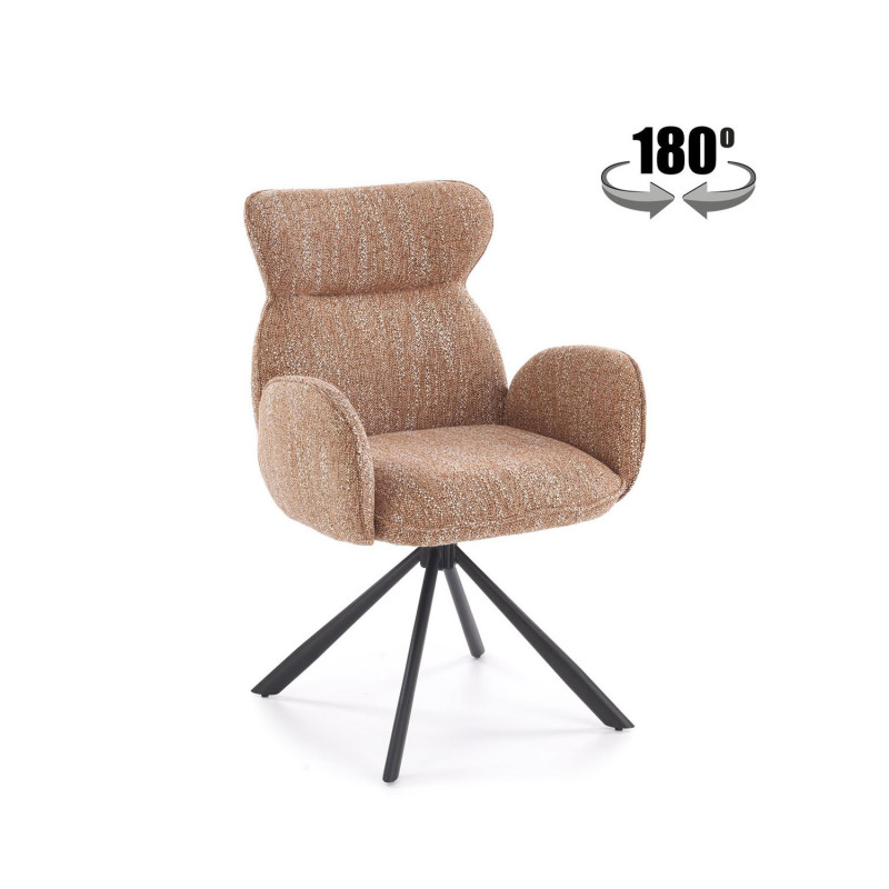 Krzesło obrotowe Chester ciemny beżowy to elegancki model łączący funkcjonalność z wyrafinowanym designem. Tapicerowane miękką tkaniną w odcieniu cynamonowym i oparte na stabilnym, czarnym stelażu ze stali malowanej proszkowo, stanowi idealne uzupełnienie nowoczesnych wnętrz. Dzięki funkcji obrotowego siedziska 180° zapewnia komfort użytkowania i swobodę ruchu, sprawdzając się doskonale w jadalni, salonie lub biurze.