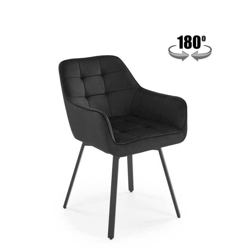 Krzesło obrotowe Dublin czarne #66 to połączenie nowoczesnego stylu loft z wygodą użytkowania. Tapicerowane miękką tkaniną velvet HLR #66 w eleganckim czarnym odcieniu, zachwyca subtelnym połyskiem i przyjemną fakturą. Stabilny stelaż z czarnej stali malowanej proszkowo podkreśla jego industrialny charakter, a funkcja obrotowego siedziska 180° zapewnia pełen komfort w codziennym użytkowaniu. Idealne do jadalni, salonu czy nowoczesnego biura.