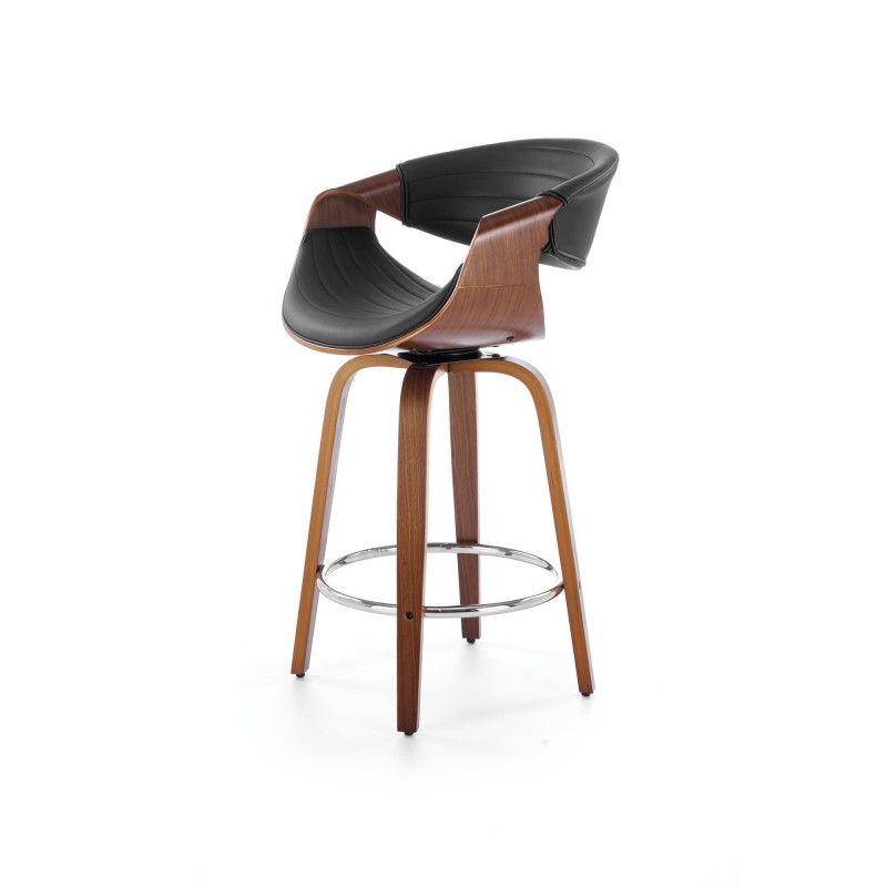 Siedzisko i oparcie hokera pokryte są wytrzymałą ekoskórą w kolorze czarnym, który nadaje mu szyku i elegancji. Hoker posiada także wygodne podłokietniki, które zapewnią komfort podczas siedzenia. Jest to idealny mebel do salonu lub jadalni, który z pewnością będzie ozdobą wnętrza.