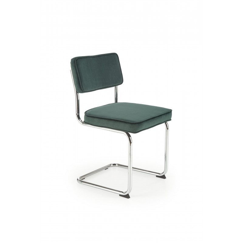 Oparcie i siedzisko krzesła są obite miękką tkaniną welurową w pięknym kolorze, który kontrastuje z błyszczącą, srebrną konstrukcją. Tkanina welurowa nadaje krzesłu K510 przyjemny w dotyku i elegancki wygląd. Stal chromowana, która została użyta do wykonania ramy, dodaje wyjątkowego efektu i sprawia, że krzesło prezentuje się niezwykle atrakcyjnie.
