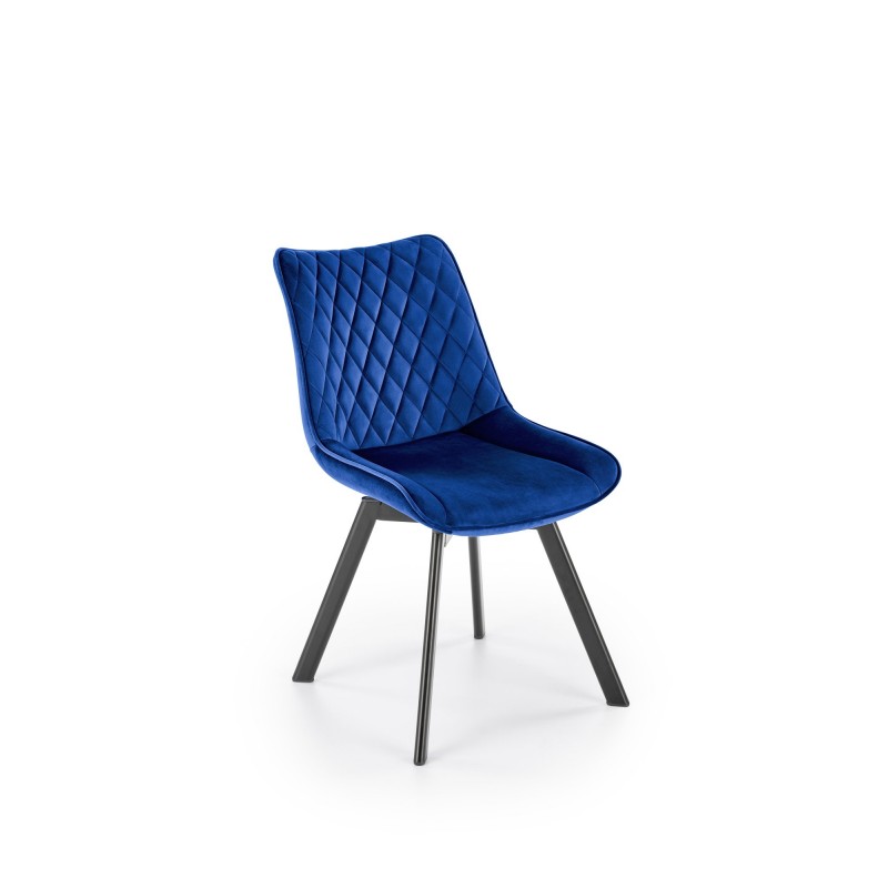 Siedzisko i oparcie połączone są w jedną bryłę, co dodaje krzesłu komfortowego charakteru. Brak podłokietników nadaje mu minimalistyczny i lekki wygląd. Oparcie zdobią symetryczne przeszycia, tworzące efektowne romby, które dodają mu wyrafinowanego wyglądu.