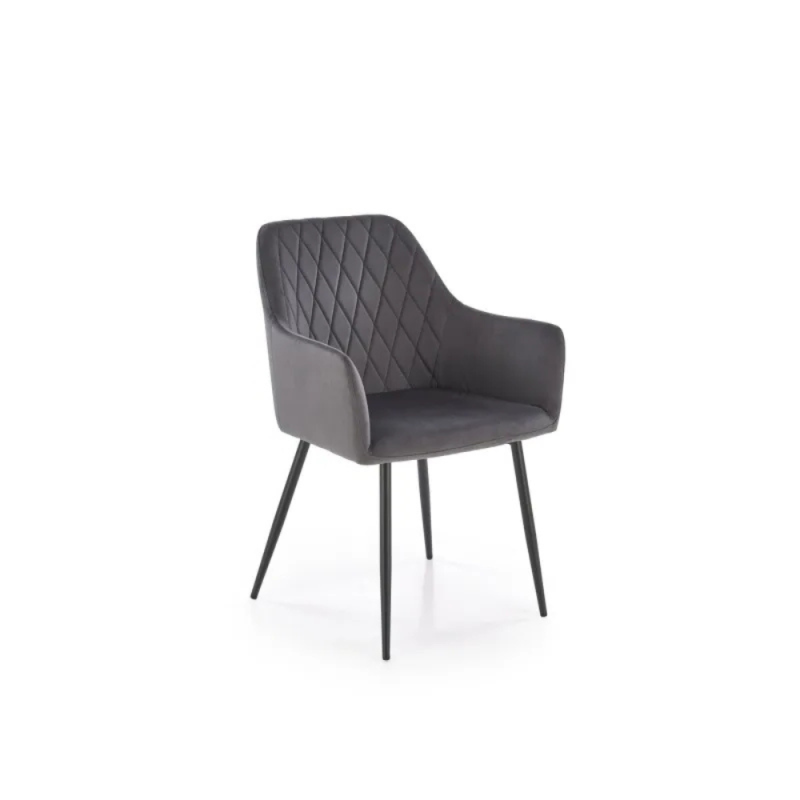Krzesło Brian to elegancka propozycja, która harmonijnie łączy nowoczesny design z klasyczną estetyką. Tapicerka krzesła wykonana jest z luksusowej tkaniny velvet w popielatym kolorze, co nadaje meblowi wyrafinowanego i ponadczasowego charakteru. Miękka i przyjemna w dotyku tkanina velvet podkreśla elegancję krzesła, jednocześnie zapewniając wysoki komfort siedzenia.