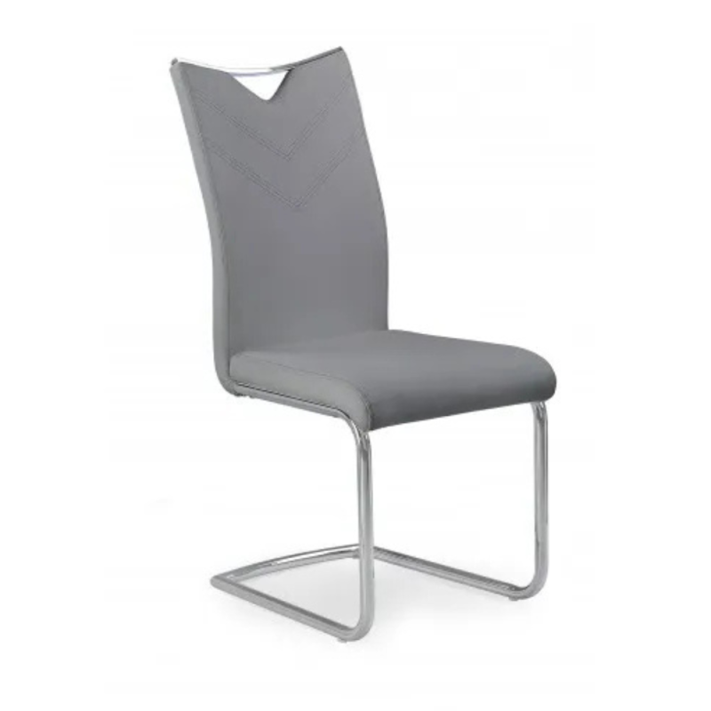 Siedzisko krzesła zostało specjalnie zaprojektowane z obniżoną przednią częścią, aby zapobiegać uciskowi na uda użytkownika i zapewnić maksymalny komfort. Oparcie krzesła jest estetycznie wykończone przeszyciami w kształcie litery V i posiada profilowane formy. Dodatkowo, w górnej części oparcia znajduje się uchwyt, ułatwiający przesuwanie krzesła.
