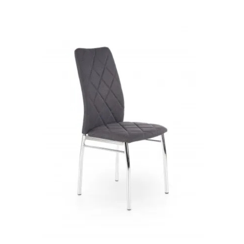 Krzesło K309 pokrywa tkanina, w uniwersalnym szarym kolorze, który doskonale uzupełni wnętrza nowoczesne, klasyczne, bądź skandynawskie. Wykonanie z wysokogatunkowej tkaniny obiciowej gwarantuje trwałość, przez wiele lat użytkowania. Jej ogromną zaletą jest łatwość czyszczenia, a także odporność na mechacenie się oraz przetarcia. Krzesło K309 posiada kilka wariantów kolorystycznych co znacznie ułatwi wybór idealnej konfiguracji. Profilowane oparcie oraz siedzisko uzupełnia warstwa elastycznej i miękkiej pianki, która dodatkowo podnosi komfort użytkowania. Elementem ozdobnym są pikowania w kształcie rombów, przez które mebel zyskuje eleganckiego wyglądu.