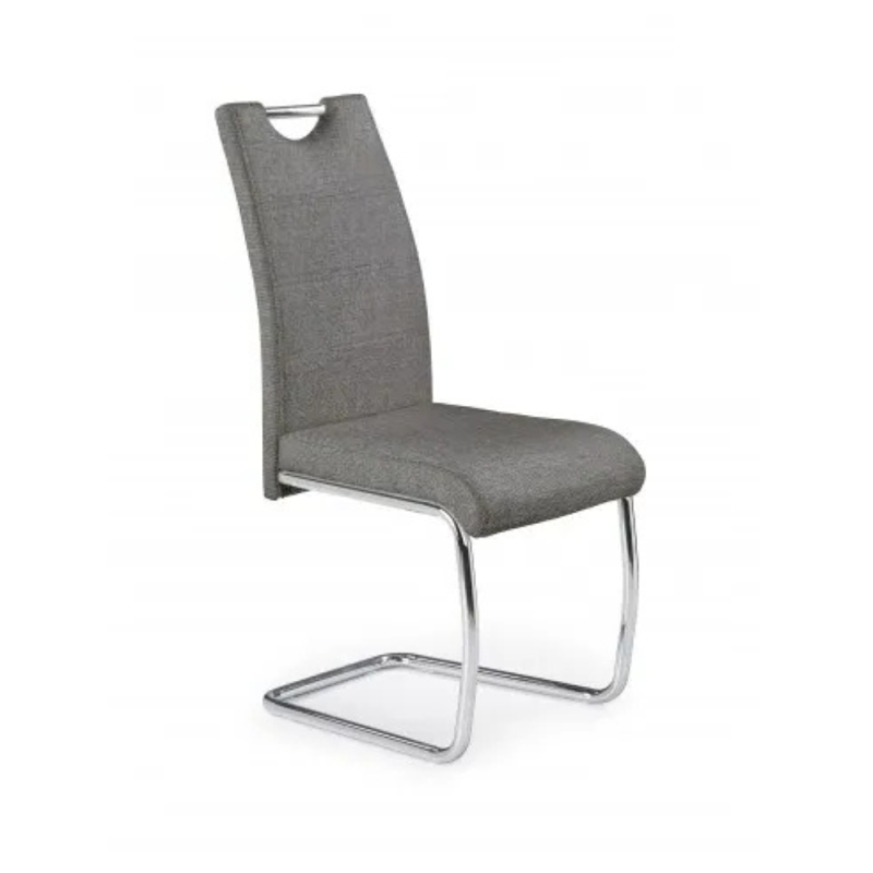 Tapicerka krzesła K349 jest wysokogatunkową tkaniną obiciową w szarym kolorze. Jej zalety to przede wszystkim odporność na uszkodzenia mechaniczne, łatwość w utrzymaniu czystości, a także wytrzymałość. Dodatkowo, materiał jest bardzo miły w dotyku. Pomysłowym rozwiązaniem są staranne przeszycia, znajdujące się na oparciu oraz siedzisku. Wygodę podnosi elastyczna pianka tapicerska, znajdująca się na oparciu oraz siedzisku.