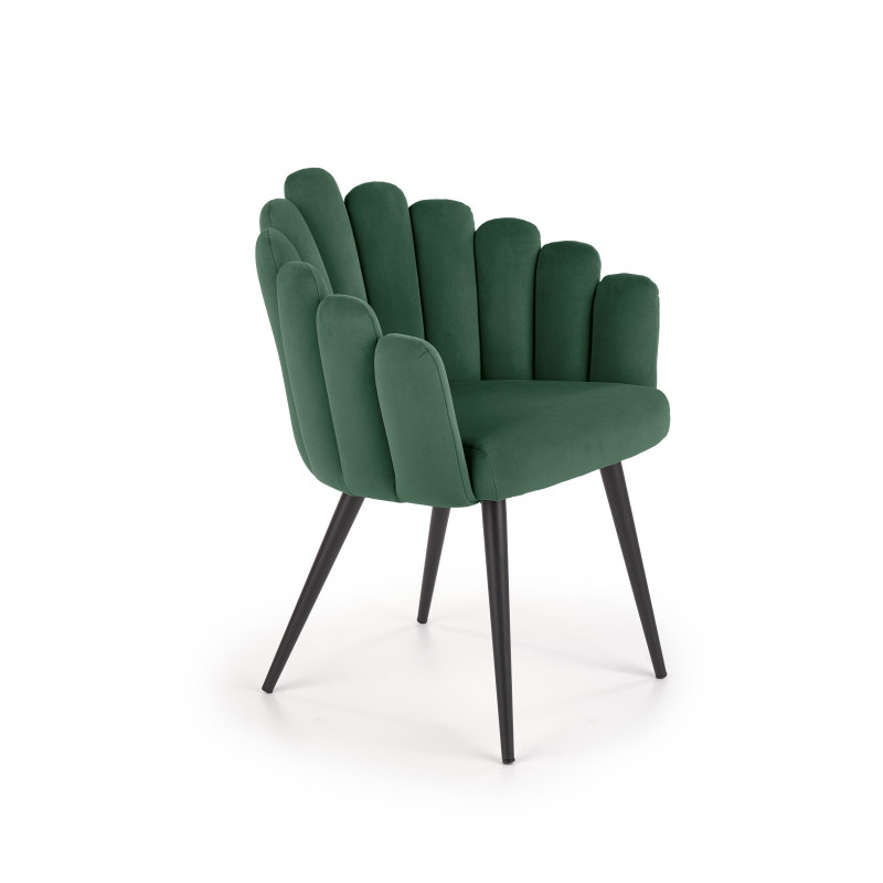 Krzesło prezentowane w ofercie pokryte zostało miłą i przyjemną w dotyku tkaniną, której odporność na wszelkiego rodzaju uszkodzenia mechaniczne pozwoli przez wiele lat korzystać z produktu, bez obaw o jego stan. Tkanina velvet nie mechaci się, nie przeciera, a dodatkowo jest bardzo łatwa w utrzymaniu czystości. Cechą charakterystyczną tkanin welurowych jest efekt połyskiwania i zmieniania odcienia pod wpływem dotyku. Pięknie zaprojektowane oparcie podkreśla wyjątkowy charakter mebla.