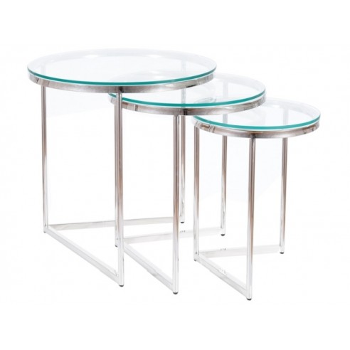 Ten stylowy zestaw trzech okrągłych ławek to doskonała propozycja do aranżacji nowoczesnych, nowojorskich i glamour. Ławy typu TRINITY sprawdzą się równie dobrze zarówno w salonie, jadalni, jak i w przestrzeniach biznesowych, kawiarniach czy luksusowych apartamentach. To wyjątkowa kompozycja, wykonana z eleganckiego połączenia szkła i stali nierdzewnej w srebrnym kolorze. Efektowna biel srebra pięknie mieni się w promieniach naturalnego światła, subtelnie rozświetlając otoczenie.