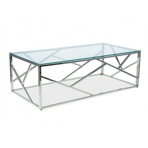Prostokątny blat mebla został wykonany ze szkła hartowanego nadającego mu wyjątkowego prestiżu. Blat jest umieszczony na srebrnej metalowej ramie o efektownym kształcie. Nogi, wychodzące spod blatu, łączą się w metalowy prostokąt, tworząc solidną konstrukcję. Podstawa mebla została wykonana z pomalowanej stali nierdzewnej. Model ten dostępny jest w różnych rozmiarach.