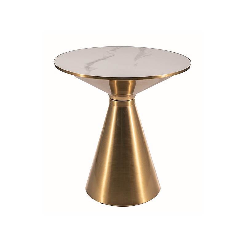 Stolik kawowy ARIES wprowadza nowatorskie rozwiązania w dziedzinie stołów i stolików. Jego ceramiczny blat, imitujący efekt marmuru, połączony z złotą oprawą i nietypowym stelażem w formie jednej stopki podążającej ku górze, doskonale wpisuje się w estetykę stylu glamour.