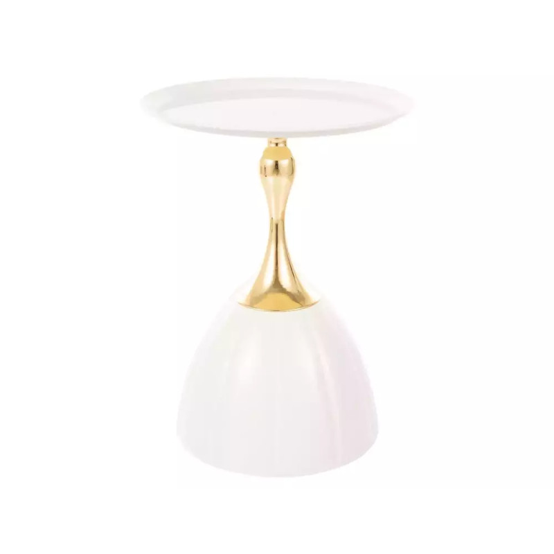 Ława Piana w wersji białej to stylowy i kompaktowy stolik wykonany w całości z metalu. Połączenie białego blatu z białym stelażem ozdobionym złotymi akcentami nadaje mu subtelnej elegancji i sprawia, że świetnie komponuje się z wnętrzami nowoczesnymi, glamour oraz skandynawskimi. Okrągły blat o uniwersalnej średnicy doskonale sprawdzi się jako stolik kawowy, a także praktyczny stolik pomocniczy ustawiony przy sofie lub fotelu.
