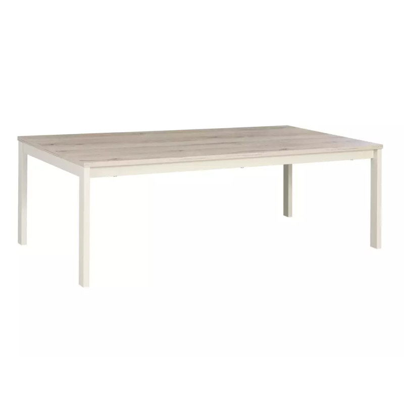 - Blat z płyty laminowanej w kolorze off white + dąb alpejski – elegancki i odporny na codzienne użytkowanie.