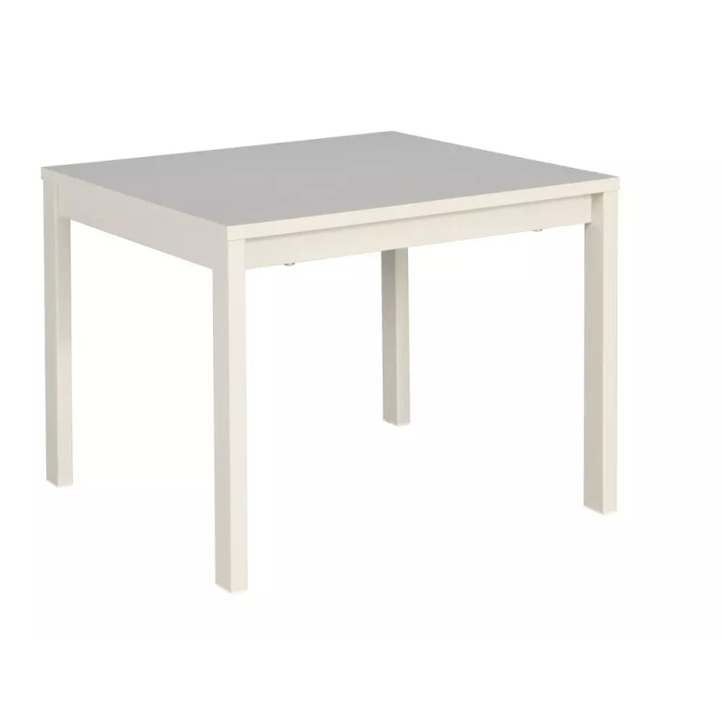 - Blat z płyty laminowanej w kolorze off white – trwały, łatwy w utrzymaniu i estetyczny.