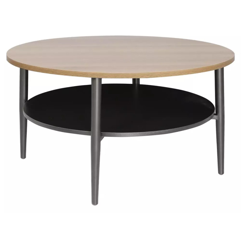 Ława Ella A to elegancki i funkcjonalny stolik kawowy, który łączy naturalne wykończenie blatu w kolorze dąb z minimalistycznym czarnym stelażem. Okrągły blat wykonany z płyty laminowanej doskonale imituje strukturę drewna, wprowadzając do wnętrza ciepło i przytulność. Metalowa podstawa w kolorze czarnym gwarantuje stabilność i podkreśla nowoczesny charakter mebla. Ława świetnie sprawdzi się we wnętrzach modern, loftowych, skandynawskich oraz naturalnych.