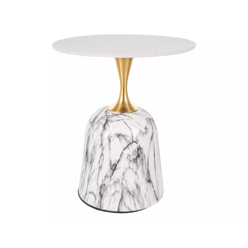 Ława Fama to nowoczesny i efektowny stolik kawowy, który wyróżnia się eleganckim marmurowym wykończeniem oraz dekoracyjnymi złotymi akcentami. Okrągły blat wykonany z wysokiej jakości ceramiki w białym odcieniu z wyraźnym efektem marmuru prezentuje się niezwykle stylowo, a metalowy stelaż w kolorze biały marmur + złoty podkreśla luksusowy charakter całego mebla. Ława doskonale sprawdzi się w aranżacjach glamour, modern oraz we wnętrzach premium.