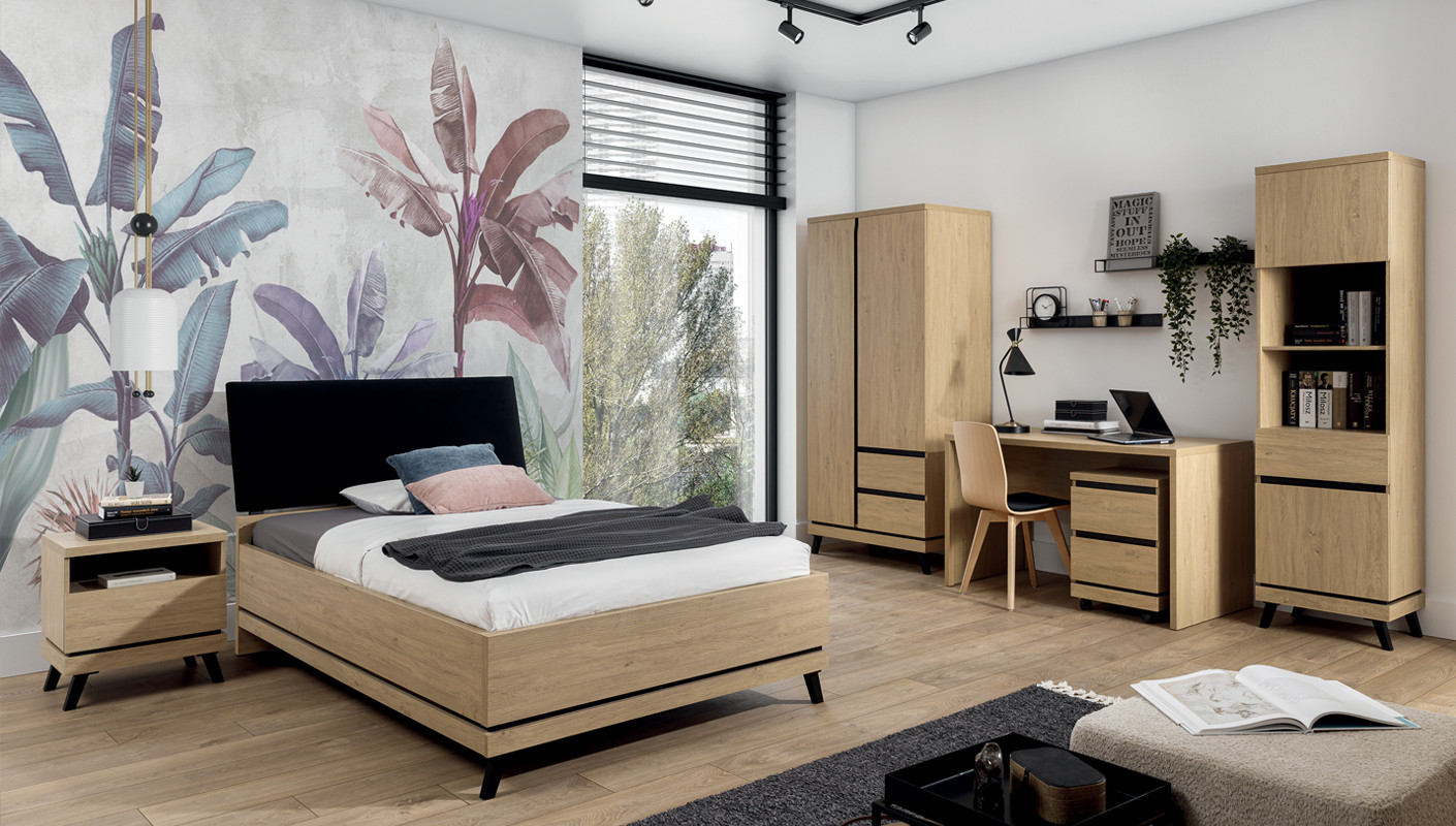 Biurko z kolekcji Ate to nowoczesny mebel, który łączy funkcjonalność z eleganckim designem. Wykonane z wysokiej jakości płyty wiórowej laminowanej, zapewnia trwałość i odporność na uszkodzenia. Blat o grubości 32 mm, wykonany z płyty wiórowej laminowanej (2 x 16 mm), oferuje przestronną powierzchnię do pracy. Korpus biurka ma grubość 16 mm, co gwarantuje stabilność konstrukcji.