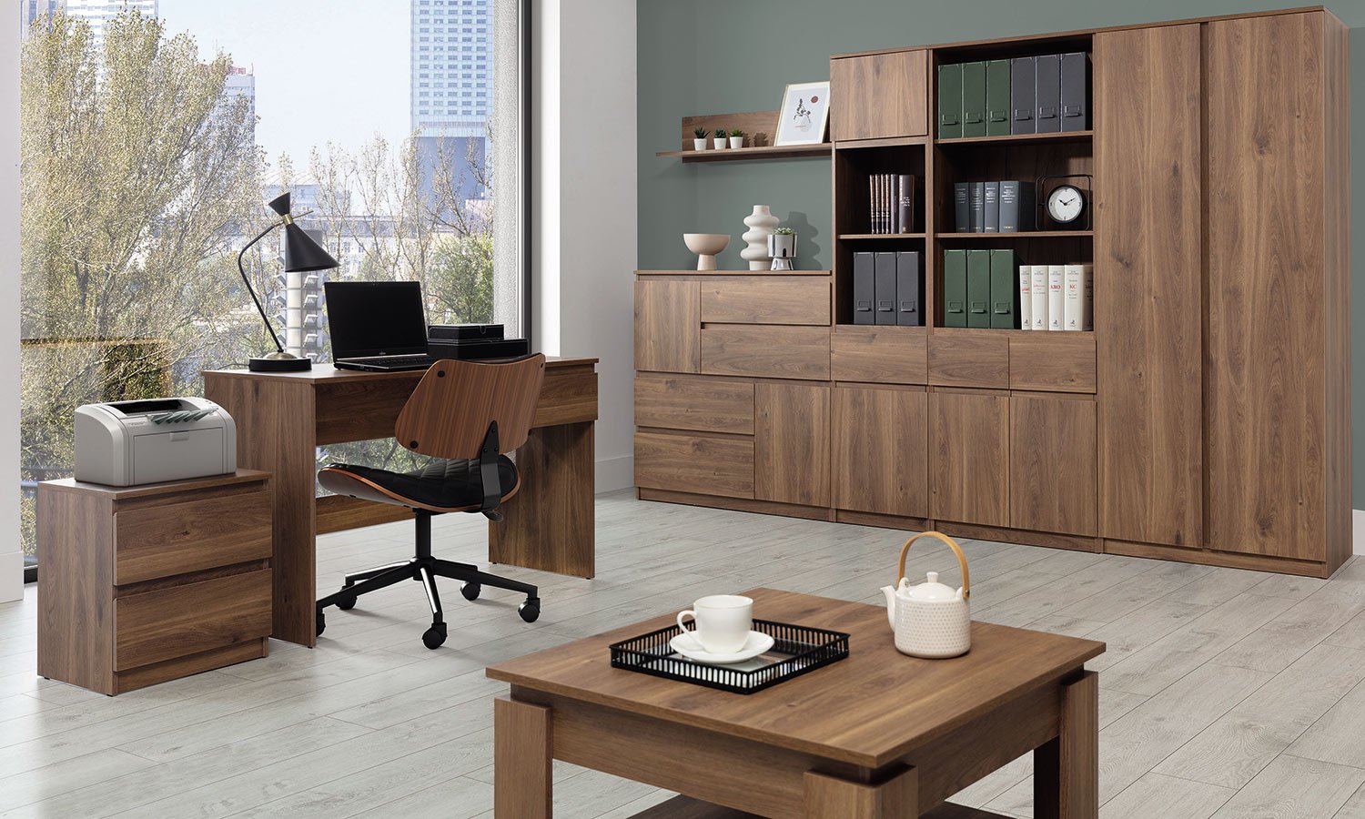 Biurko jest częścią kolekcji Remi, w której znajdują się również inne meble o spójnej stylistyce, doskonale pasujące do każdego nowoczesnego wnętrza.