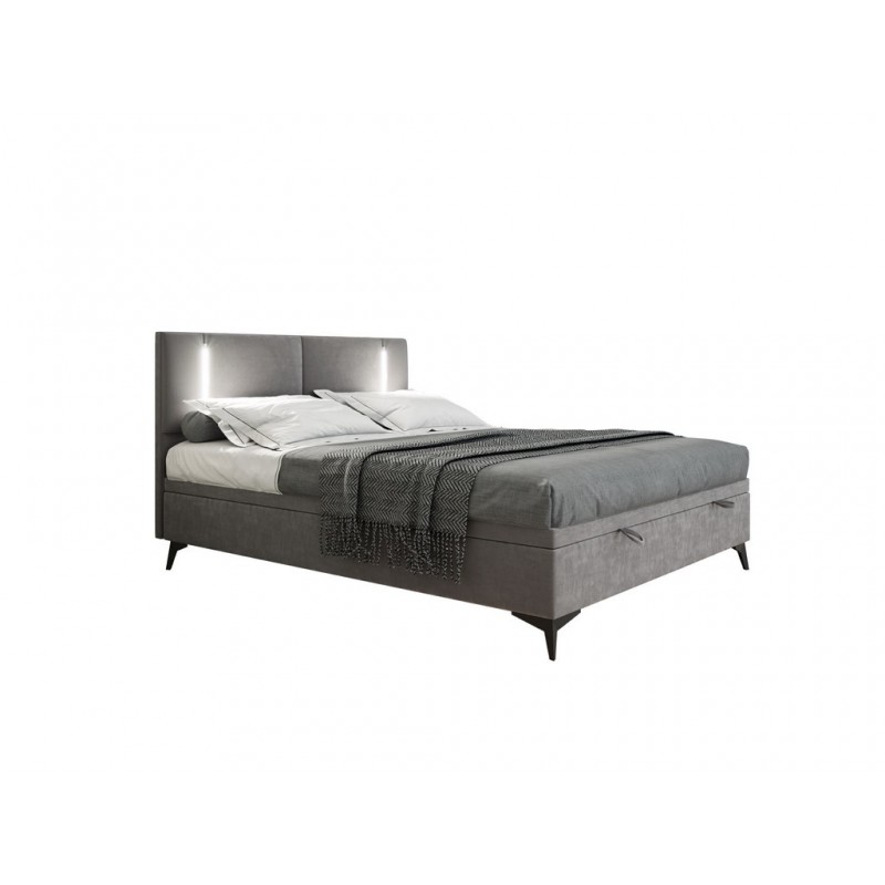 Łóżko kontynentalne wyróżnia się miękkim wezgłowiem z wbudowanym oświetleniem LED, które nie tylko dodaje elegancji, ale także zapewnia przyjemne światło do czytania lub relaksu przed snem. Dodatkowym atutem są wbudowane automatyczne podnośniki gazowe, które ułatwiają dostęp do pojemnika na pościel. Dzięki nim, otwarcie i zamknięcie pojemnika staje się łatwe i wygodne, bez konieczności używania siły.