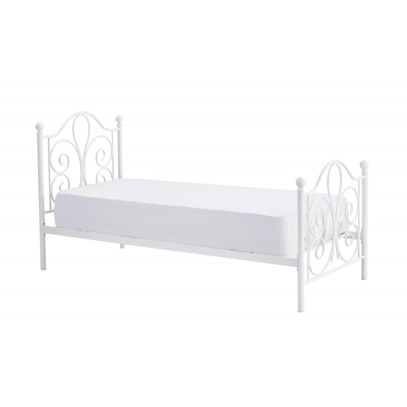 To łóżko zostało wykonane z malowanej proszkowo stali w kolorze białym. Subtelne zdobienia na zagłówku i zanurzu doskonale wpisują się również w nowoczesne i minimalistyczne aranżacje.