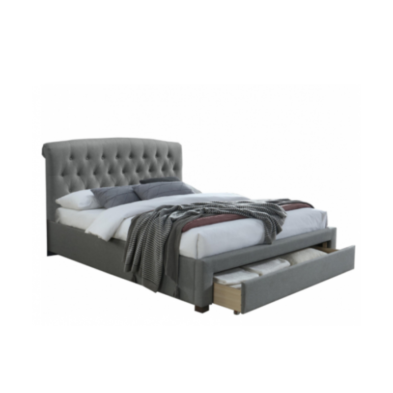 Łóżko ALATRI 160x200 z pikowanym zagłówkiem i szufladą w kolorze szarym.