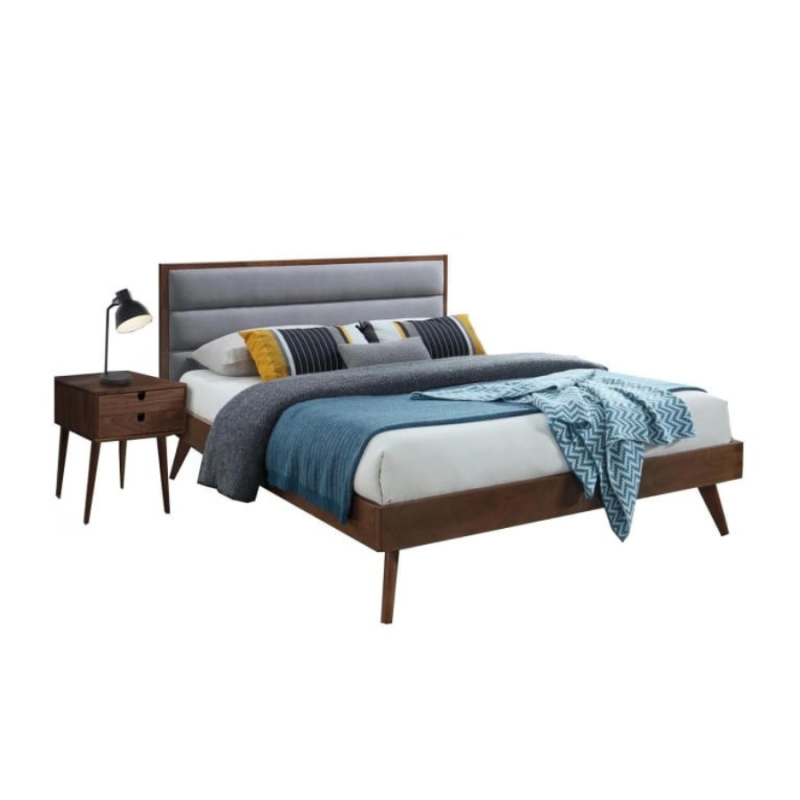 Łóżko OTRANTO 160x200 z tapicerowanym zagłówkiem orzech/szare.