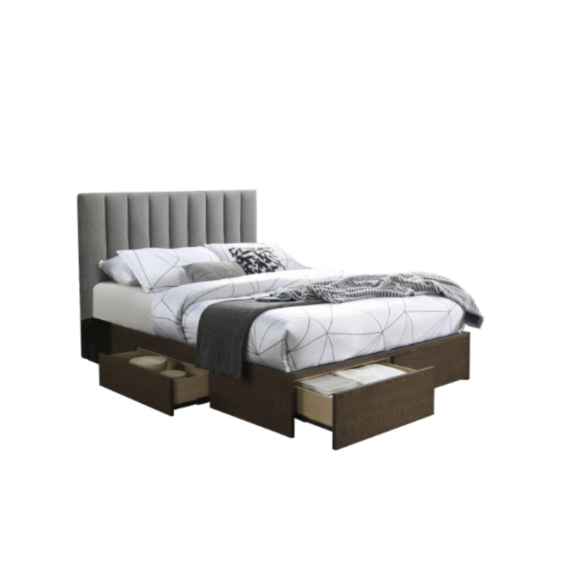 Łóżko tapicerowane GROSSETO 160x200 szare/orzech z szufladami.