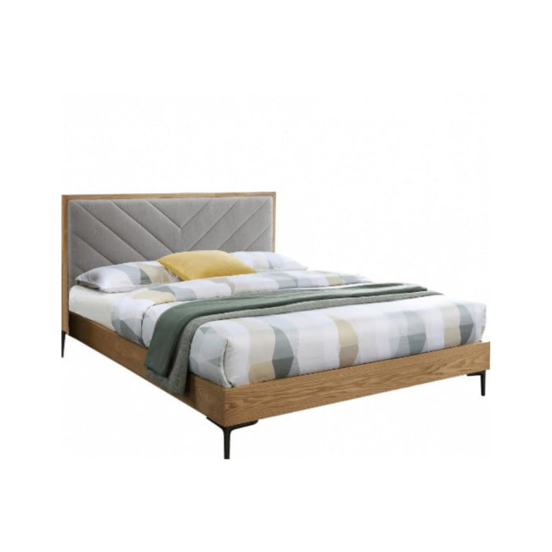 Połączenie klasycznego wyglądu drewna z eleganckim zagłówkiem sprawia, że to łóżko nie tylko doskonale wpasuje się w aranżację wnętrza, ale również stanie się miejscem, które będzie Cię zapraszać do spokojnego wypoczynku.