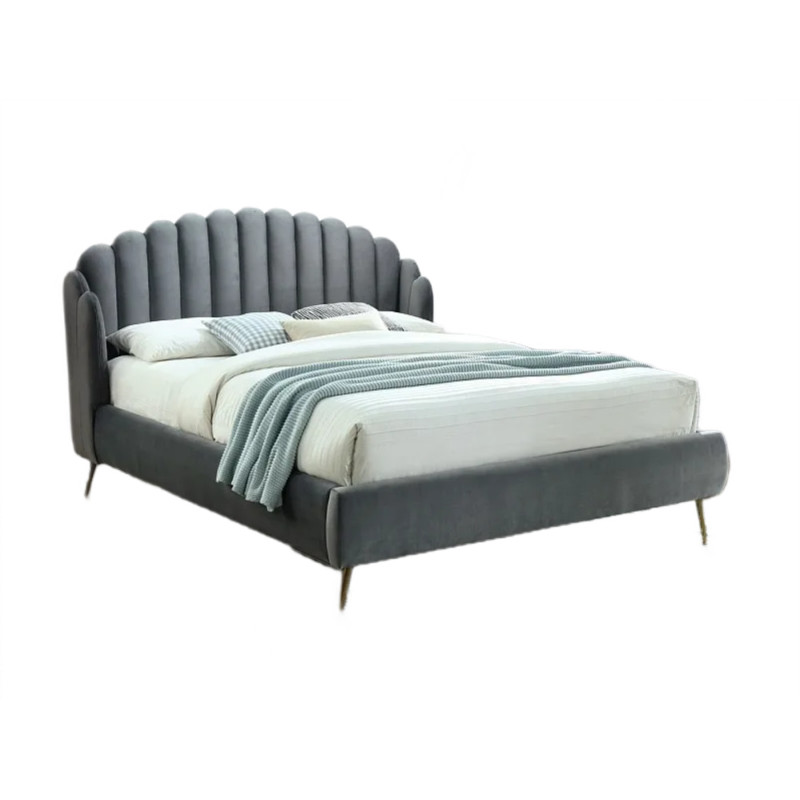 Łóżko Calabria to elegancki i komfortowy mebel, który doskonale wpasuje się w każdą nowoczesną sypialnię. Wykonane z aksamitnej tkaniny Bluvel w subtelnym, szarym kolorze, łóżko wyróżnia się luksusowym wyglądem i przyjemną w dotyku powierzchnią.
