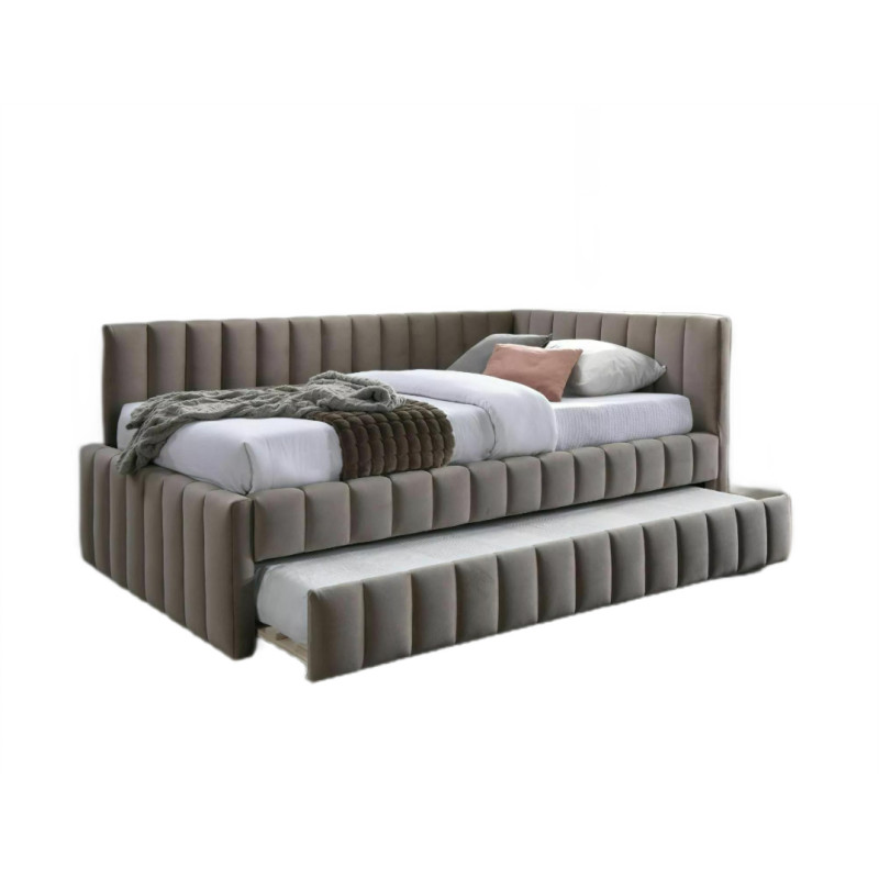 Łóżko Alfie to wyjątkowe połączenie elegancji i funkcjonalności, idealne dla tych, którzy potrzebują dodatkowej przestrzeni do spania. Wykonane z aksamitnej tkaniny Bluvel w stylowym, ciemnym beżowym kolorze, łóżko Alfie wnosi do wnętrza ciepły i luksusowy akcent.