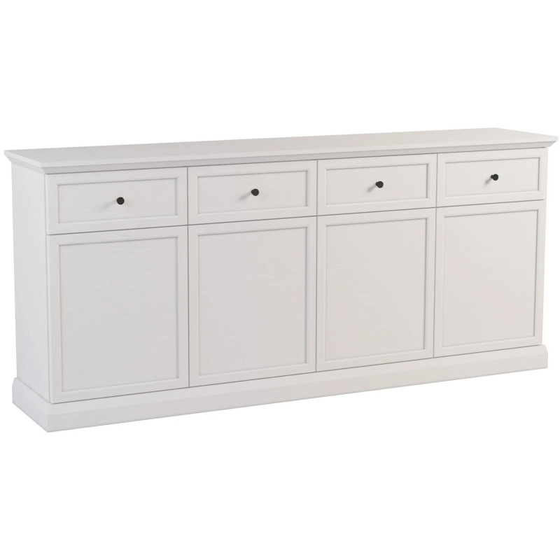 Komoda Lucca K4D4S w kolorze białym to elegancki i funkcjonalny mebel, który doskonale wpasuje się w nowoczesne i klasyczne wnętrza. Wykonana z wysokiej jakości płyty laminowanej, charakteryzuje się odpornością na uszkodzenia mechaniczne, co zapewnia jej trwałość i estetyczny wygląd przez długi czas.