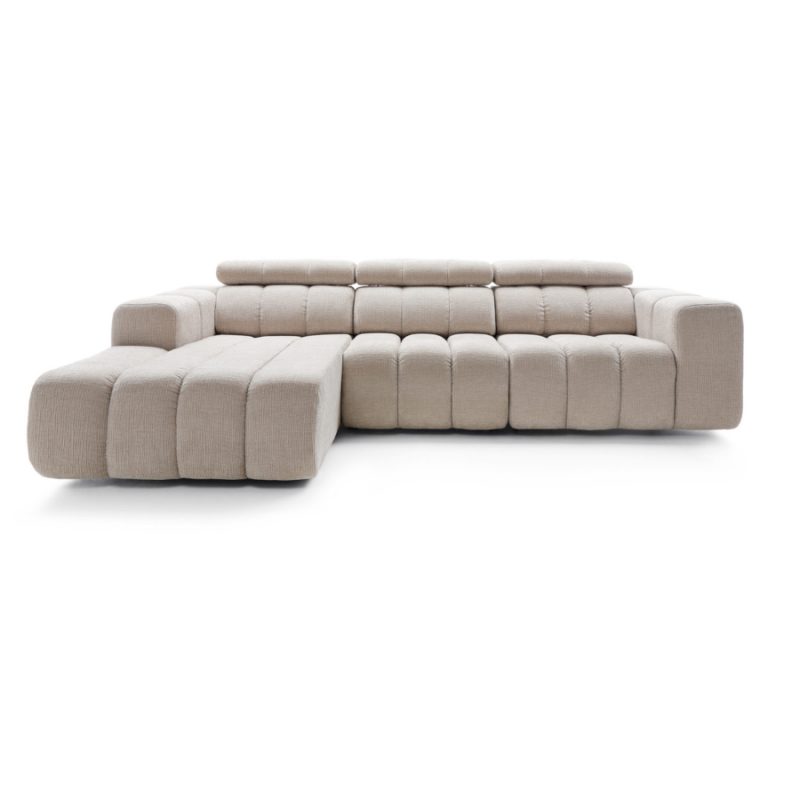 Modułowość to kolejny atut kolekcji. Dzięki różnym modułom można tworzyć niestandardowe konfiguracje, idealnie dopasowane do przestrzeni i oczekiwań. Funkcja wysuwu siedziska daje dodatkową przestrzeń do siedzenia i leżenia. Dodatkowe elementy, takie jak pufa, pozwalają na elastyczne dostosowanie do potrzeb i tworzenie różnych aranżacji.