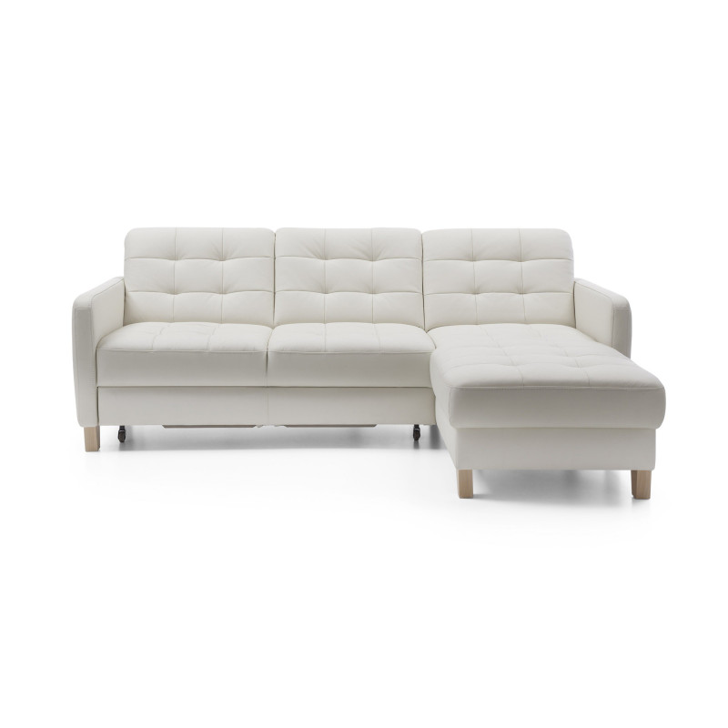 Wygodna do rozkładania funkcja spania DELFIN sprawia, że stylowy narożnik Elio sprawdzi się zarówno jako mebel wypoczynkowy, jak też mebel do spania.