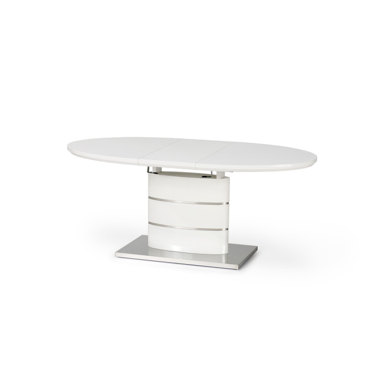 Ponadto, w każdej chwili możemy zwiększyć jego długość aż o 40 cm, co zagwarantuje miejsce dla gości, zaś podczas codziennego użytkowania warto go złożyć, jednocześnie oszczędzając przestrzeń. Elementem, który przykuje uwagę nawet najbardziej wymagających, jest podstawa wykonana ze stali nierdzewnej połączona z lakierowaną płytą MDF. Łatwa w czyszczeniu powierzchnia blatu zagwarantuje niezmienny i świeży wygląd stołu, nawet po wielu latach użytkowania. Wybierz stół Vela i wraz z nim urządź niepowtarzalne wnętrze.
