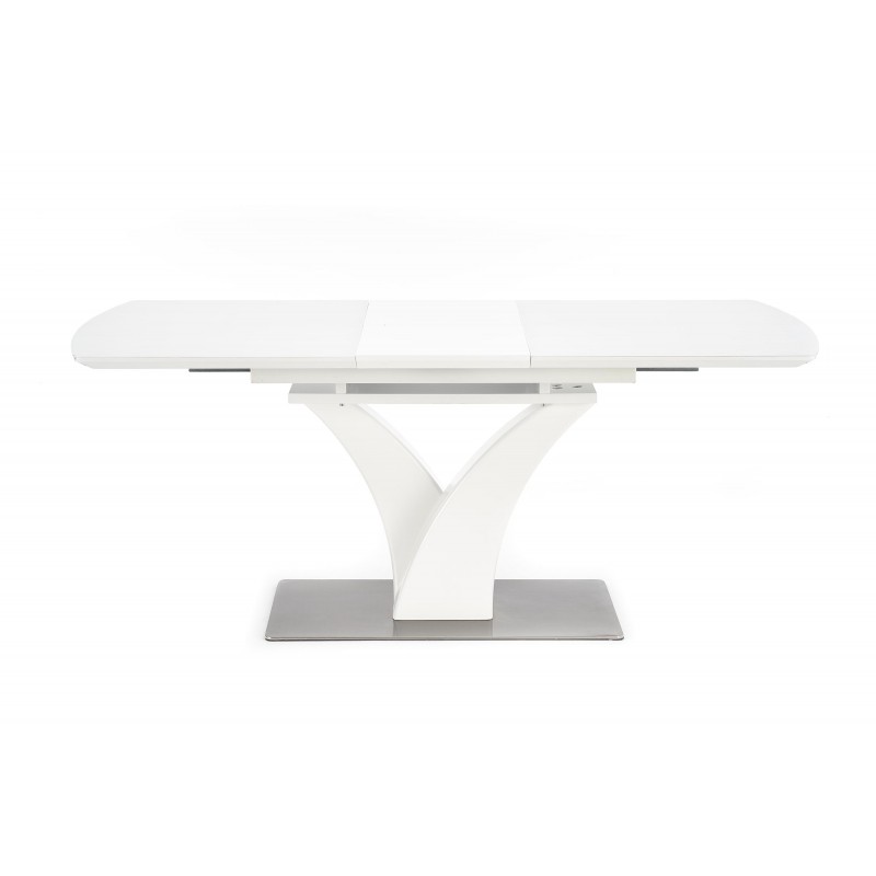 Stół rozkładany Nebula od firmy Dome to interesująca propozycja dla osób poszukujących funkcjonalnego stołu. Wykonany jest z lakierowanej na matowy biały kolor płyty meblowej MDF, co nadaje mu elegancji. Na blacie zastosowano również szkło, które nie tylko zabezpiecza blat, ale dodaje również wyrafinowanego wyglądu.