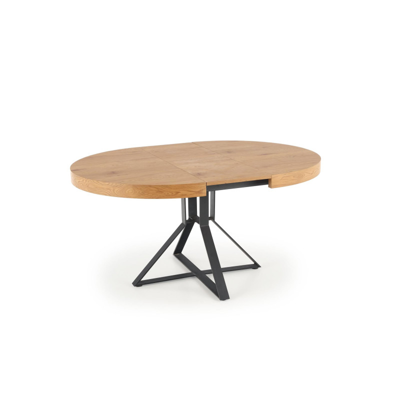 Blat stołu Zirix wykonany z MDF okleinowanego o wykończeniu dębu złotego prezentuje niezwykłą estetykę. Jego okrągły kształt o średnicy 120 sprawia, że jest to idealne miejsce do wspólnych posiłków czy spotkań towarzyskich. Dodatkowo, funkcja rozkładania stołu (do 160cm) umożliwia dostosowanie jego wielkości do zmieniających się potrzeb.