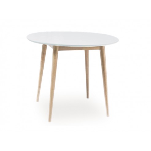 Blat stołu został starannie wykonany z trwałej płyty MDF, dostępny w eleganckim białym odcieniu w połączeniu z dębowymi nogami.