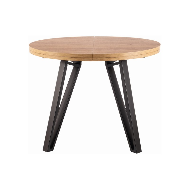 Blat stołu został starannie wykonany z trwałej płyty laminowanej, dostępny w eleganckim ocieniu dąb artisan w połączeniu z czarnymi metalowymi nogami.