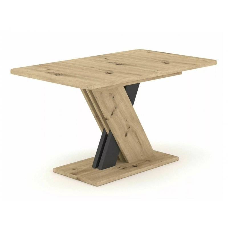 Blat stołu został starannie wykonany z trwałej płyty laminowanej, w eleganckim odcieniu dąb artisan. Podstawa została stworzona z połączenia płyty laminowanej z kolorem antracyt.