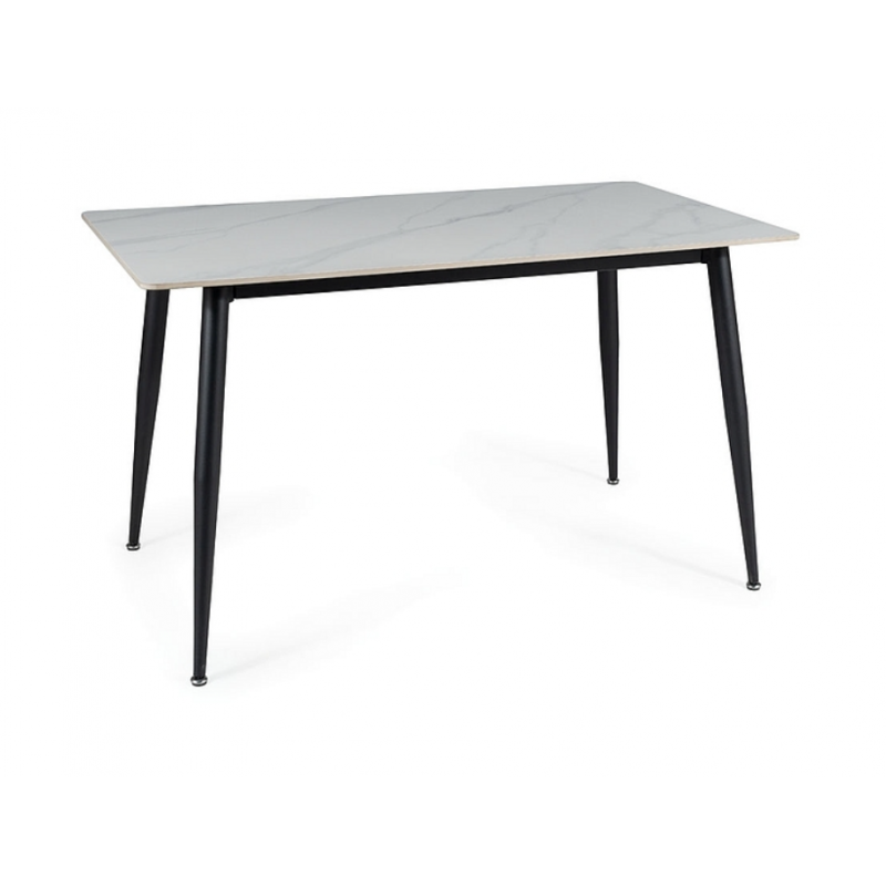 Blat stołu wykonany jest z ceramiki, co gwarantuje nie tylko elegancki wygląd, ale także trwałość i odporność na uszkodzenia.