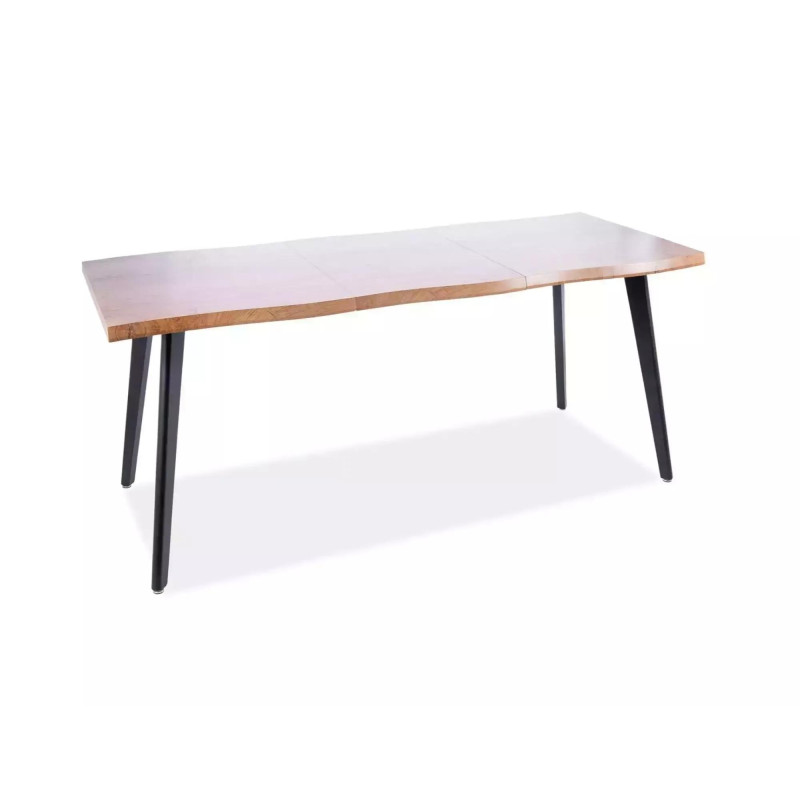 Stół rozkładany, blat: MDF + okleina, stelaż: metal, kolor: dąb artisan / czarny mat. Uwaga zmiana: Wkładka typu motylek.