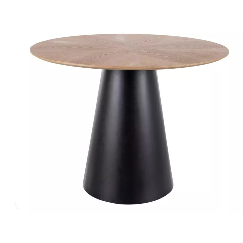 Stół Angel – kompaktowy, okrągły stół w kolorze dębu z czarnym stelażem