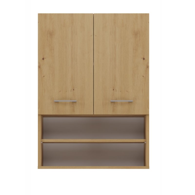 - Szafka posiada 2 półki otwarte oraz 2 schowane za drzwiami