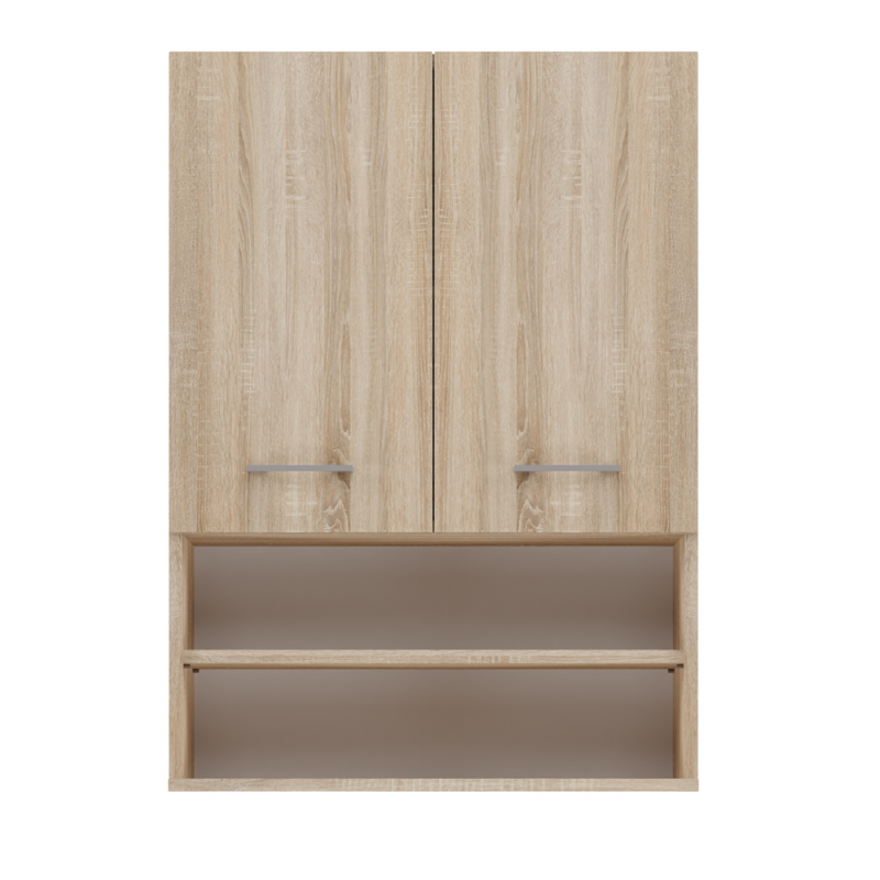 - Szafka posiada 2 półki otwarte oraz 2 schowane za drzwiami