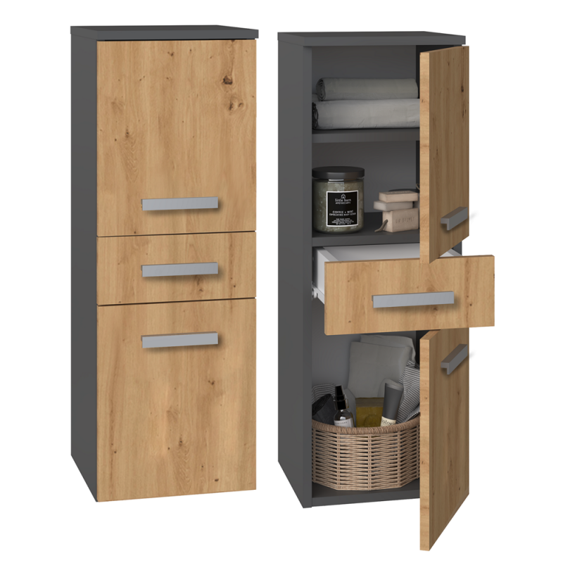 - Uchwyty drzwi i szuflady zapewniają wygodny dostęp do zawartości mebla